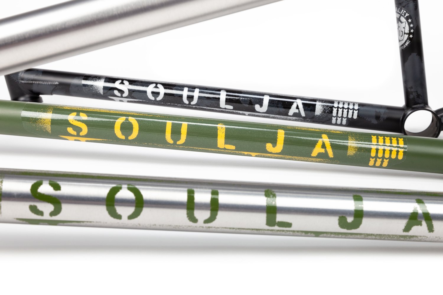 Built for battle! Dan Paley's signature Soulja frame is a favourite with street riders, featuring a 75.2 degree headangle, 8.8” standover, a super responsive 12.8 – 13.2” rear end and invest cast dropouts with built in chain tensioners.